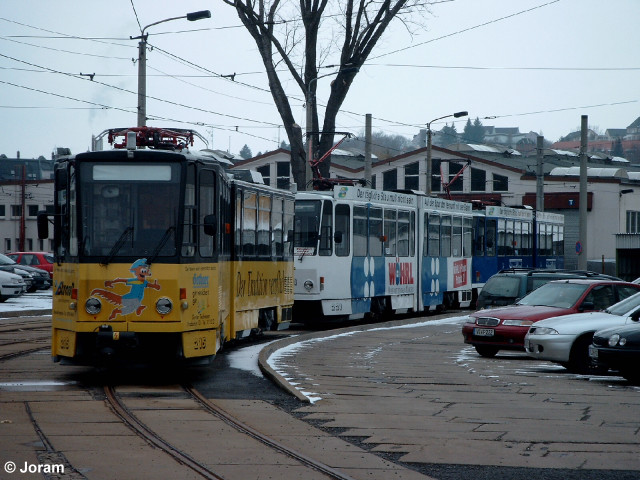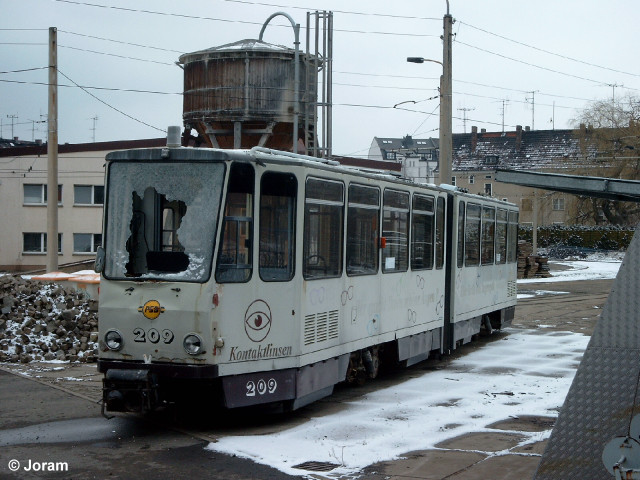 Da durch zunehmenden Individualverkehr und sinkende Einwohnerzahl der Bedarf an Triebwagen gesunken ist, werden nun auch in Plauen die ersten 4 Wagen ausgesondert. Der TW 209 steht schon nicht mehr auf Gleisen im Betriebshof und wartet auf die Verschrottung, die TW 219 und 221 sollten verkauft werden und der TW 215 wurde dem Traditionsverein angeboten, er muß allerdings vom Betriebshof - auch um Platz für den folgenden Umbau zu haben. Es wird also ein Stellplatz gesucht. Die Bilder hat mein Bruder Ende Februar aufgenommen. Aus dem Verkauf der Wagen 219 und 221 ist nun doch nichts geworden - sie fallen ebenfalls dem Schneidbrenner anheim. | ![]() |