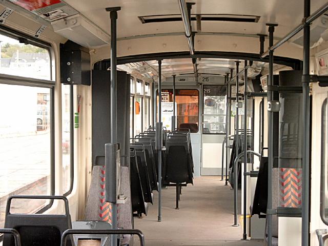 Das folgende Bild zeigt die Inneneinrichtung des KT4D - Wagens 215 nach der Aufarbeitung in der ersten Hälfte der 90er Jahre. Vorher waren die Wagen mit Plastik - Sitzen bestückt. Diese waren nicht unbedingt sehr bequem. | ![]() |