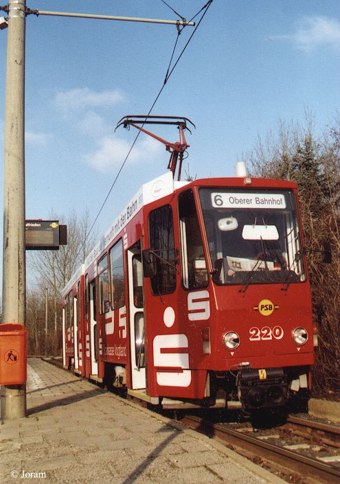 ... Der Triebwagen 240 befand sich bei dieser Aufnahme meiner Mutter im Herbst 1999 am Tunnel. Ab dem Jahr 1991 wurden alle KT4D umfangreich modernisiert. Neben dem Einbau von gepolsterten Sitzen anstelle der Plastiksitze erhielten alle Wagen automatische Anzeigen ... |